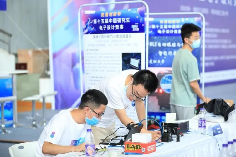 Shi Jian debugging equipment at the site of the 15th China Graduate Electronic Design Competition